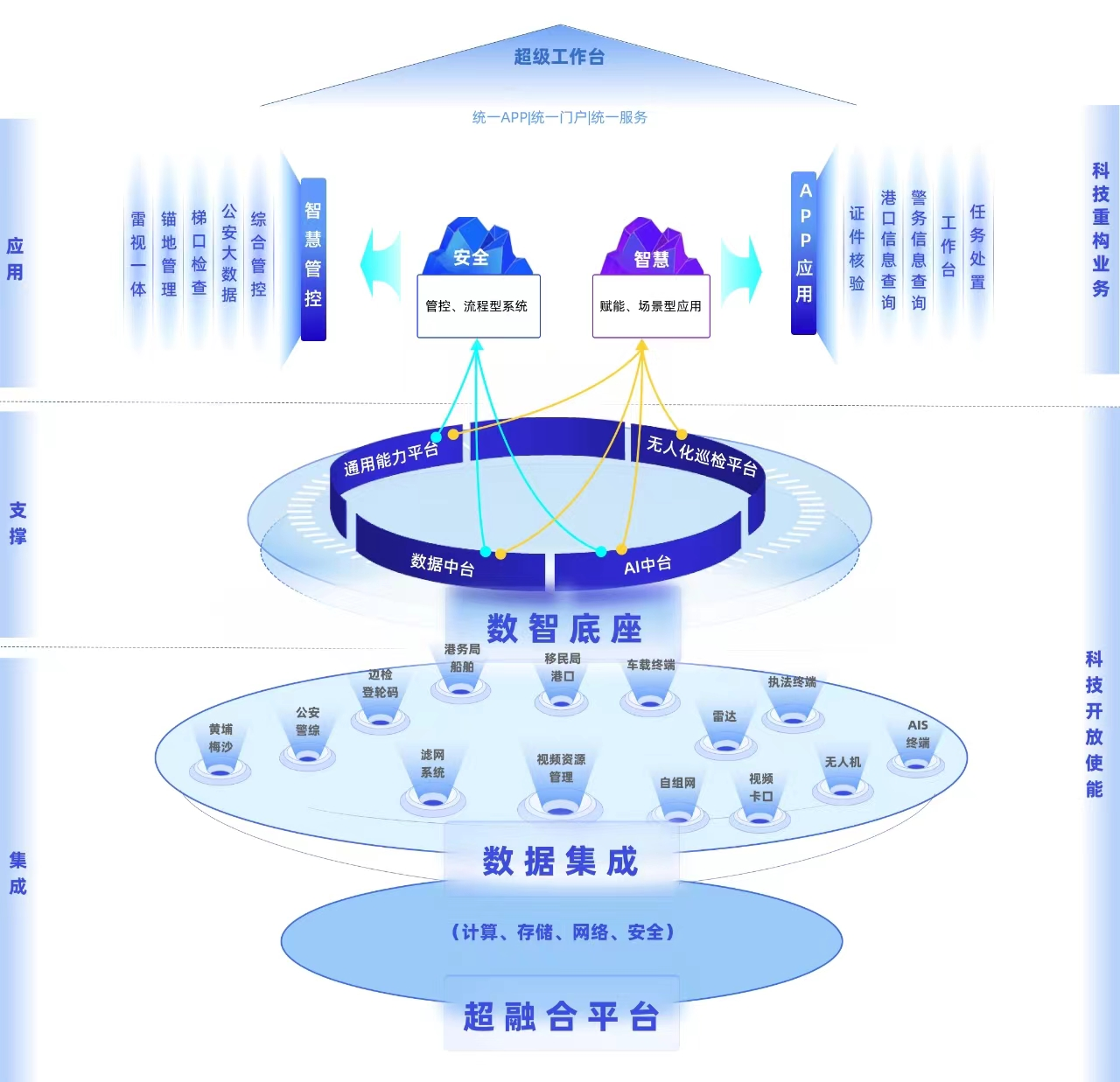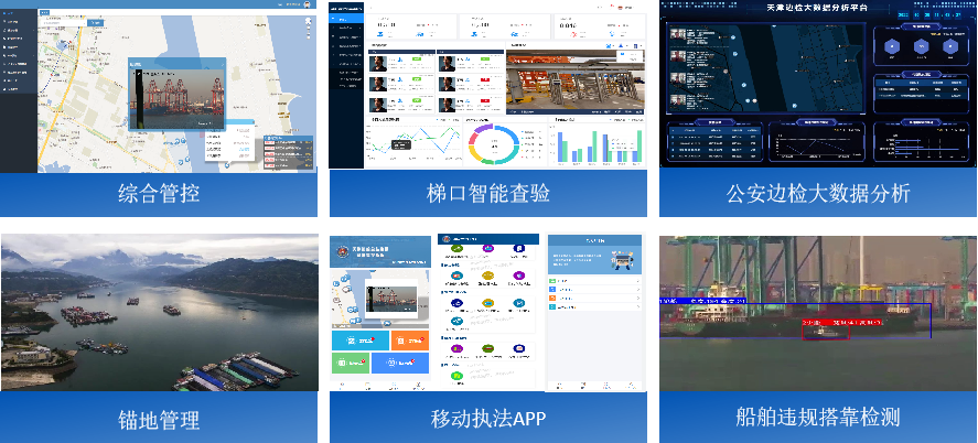 解决方案 围绕港口、船舶、人员、环境等核心管控要素,以综合管控、梯口查验、锚地管理、移动执法等重点专题为抓手,以"AI+数据"双轮驱动为核心,打造数智边检定制化专业解决方案,为边检港口精细化安全管控赋能增效。目前,已经形成了一批独具特色的软硬件产品,包括:边检海港智慧管控平台、公安边检大数据分析平台、智能梯口查验平台、边检移动执法平台、AI视频安全巡检平台,在业内得到广泛好评。