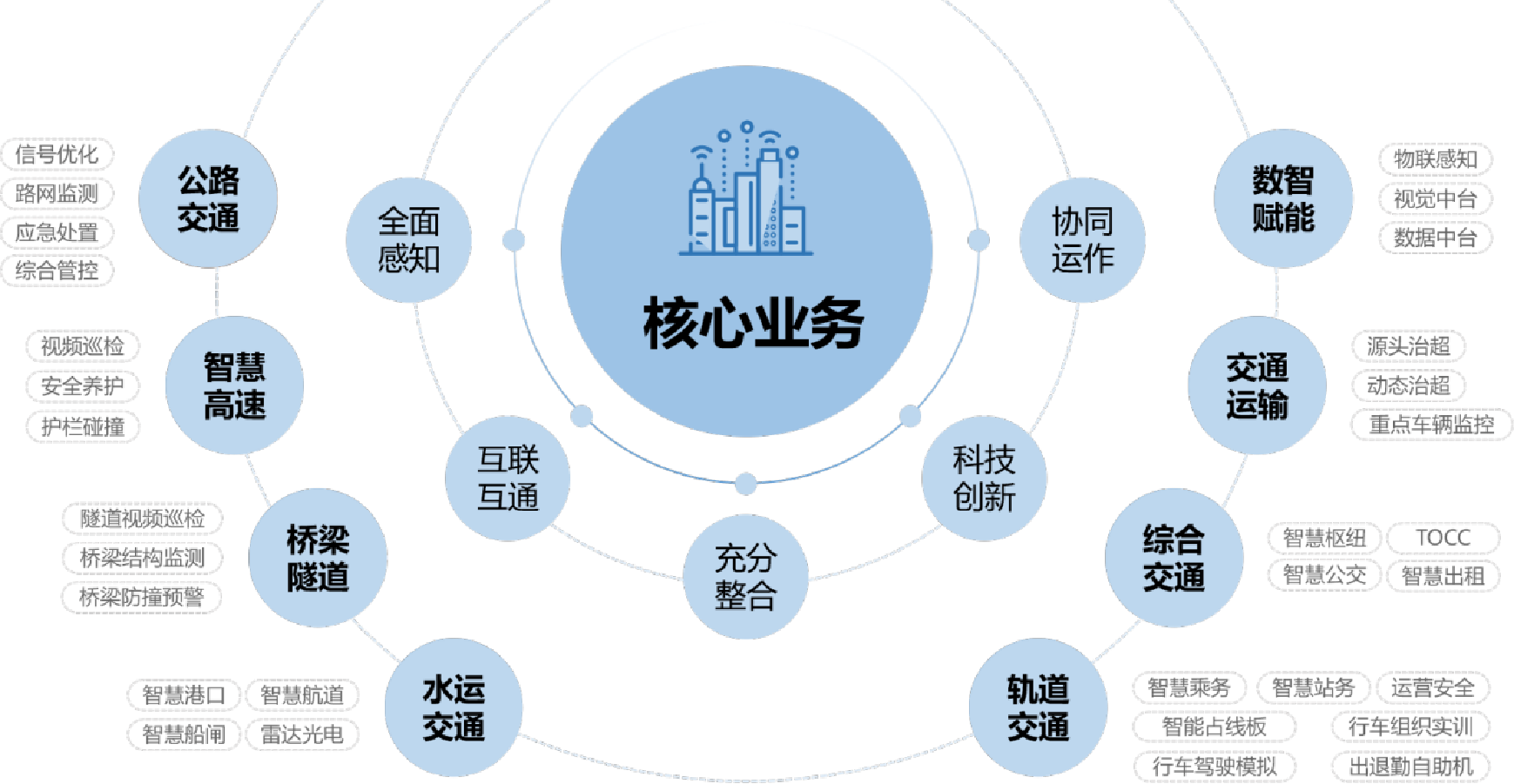 公司致力打造“政产学研资”紧密合作的创新生态,依托高校科研团队与科研院所在大数据分析、智能机器人、深度学习、计算机视觉等方面的技术优势和科研成果,与行业领域的建设、运营、运维等各阶段需求进行深度融合应用,推进人工智能相关技术在公路交通、轨道交通、水运交通、公安边防、智慧水务等领域的成果转化和快速应用落地。