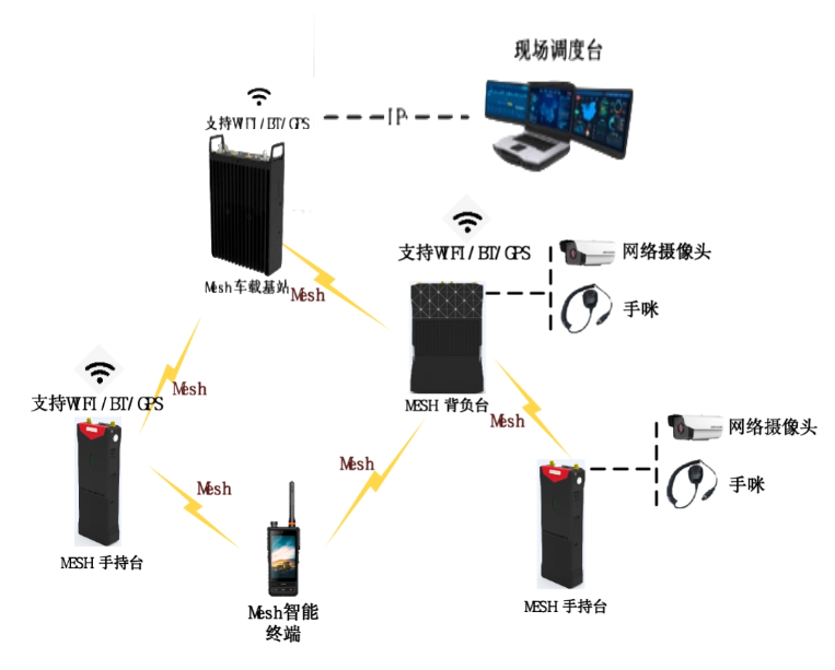采用全新的“无线网格网”理念设计的移动宽带多媒体通信系统,利用无中心自组网的分布式网络构架,支持自中继、多节点组网、快速建网,通过快速部署,实现复杂环境下的多媒体信息的实时交互。